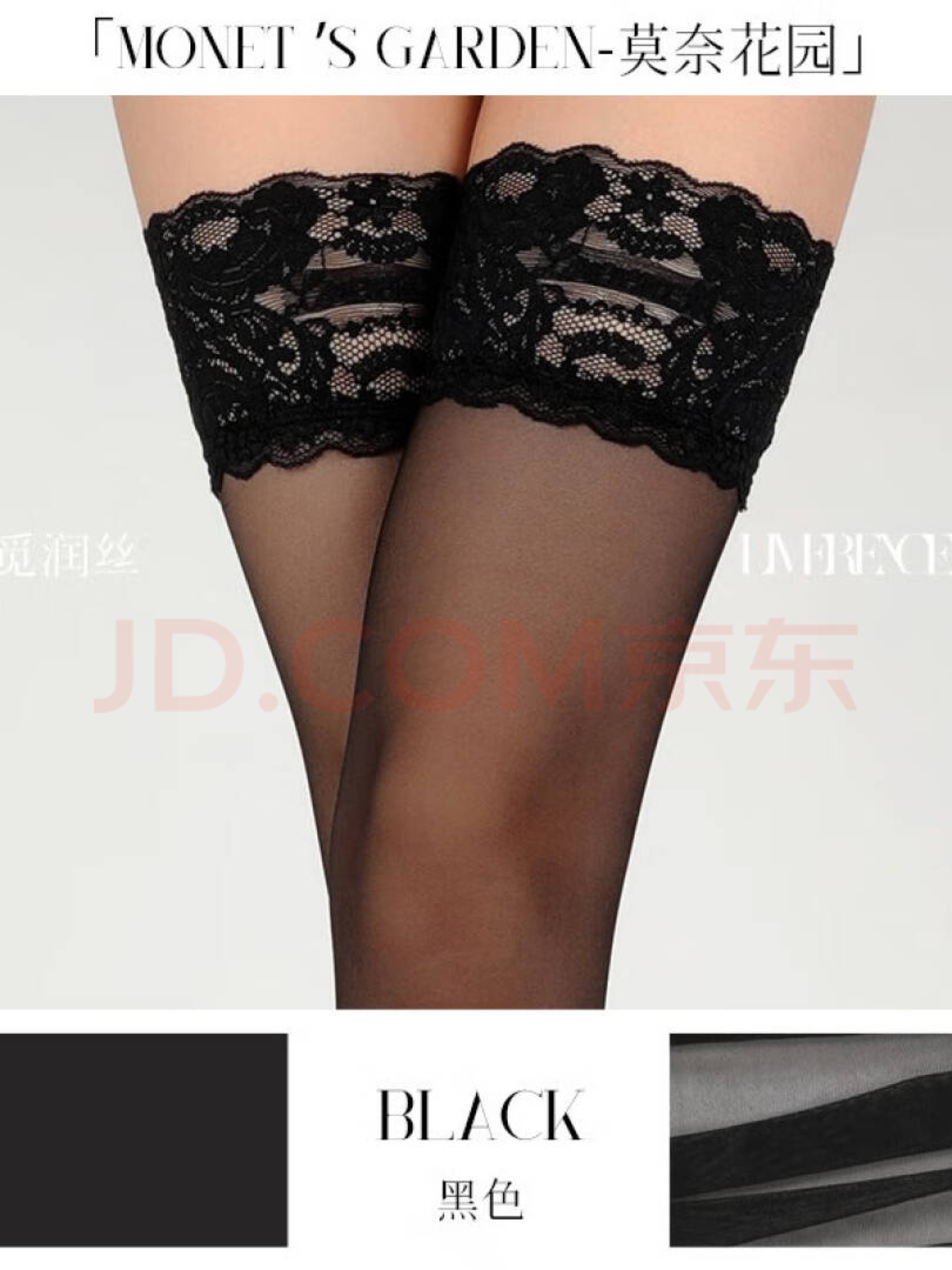 涞觅润丝【0.01】丝袜莫奈花园丝滑女薄款性感蕾丝高筒袜 黑色 均码